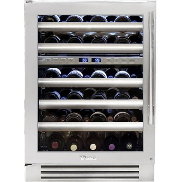 TRUE 24" Built-in Under-Counter Wine Fridge Dual Zone Left Swing - Stainless W/Glass - TWC-24DZ-L-SG-C