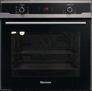 Blomberg 24`` single electric wall oven, 2.5 cu.ft. oven capacity, multifunctional oven with convection fan, timer with touch button control, five level side racks, two standard wire racks, multi-cooking function with true Euro convection fan, electronic touch control timer with digital display. Black