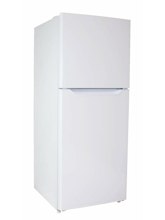 Danby branded top mount frost free refrigerator. Fridge includes clear crisper, 2 adjustable glass shelves, 5 clear door shelves with gallon bottle storage. Freezer includes one adjustable wire shelf and 2 fixed clear door shelves. Reversible door hinge. White LED interior light and electronic thermostat.