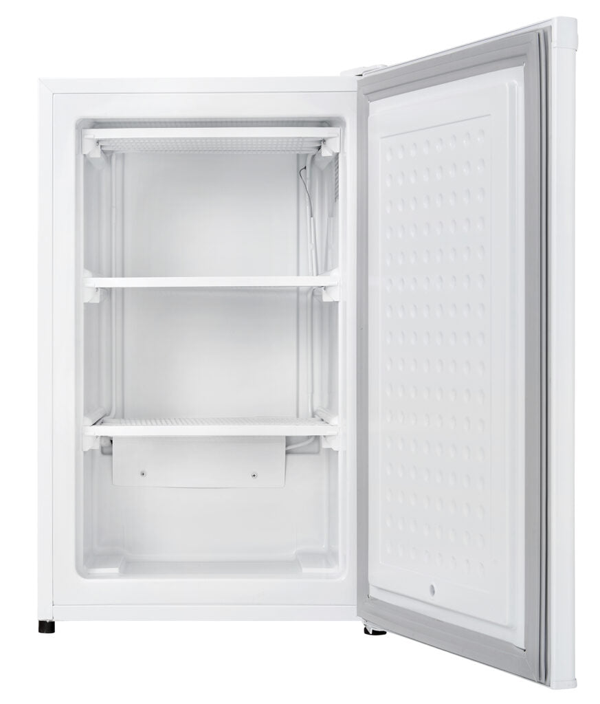 Danby branded upright freezer with manual defrost. Includes two (2) quick freeze shelves, mechanical thermostat, integrated door handle, reversible door hinge and smooth back design. Freezing temperatures of -12ºC (10.4ºF) to -24ºC (-11.2ºF).