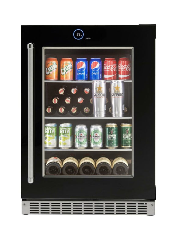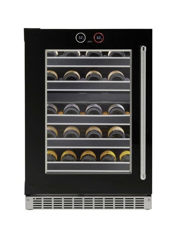 24" B/I WINE, BLACK Glass, 18 btl, Fold Down Door, (I) GRANDCRU