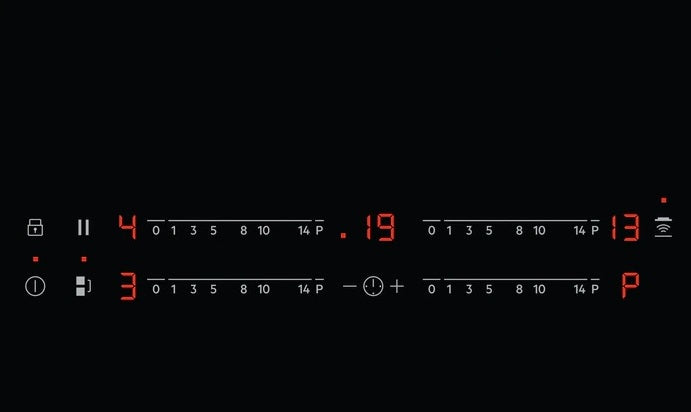 24” (60cm) induction cooktop with stainless steel trim, DirekTouch™ slide design touch controls, 4 MaxiSense® self-sizing induction zones 14 power levels including Power, LED display indicating power level Boost, Adjustable timer – max 99 mins, Stop+Go function, Child safety lock, Residual heat indicator