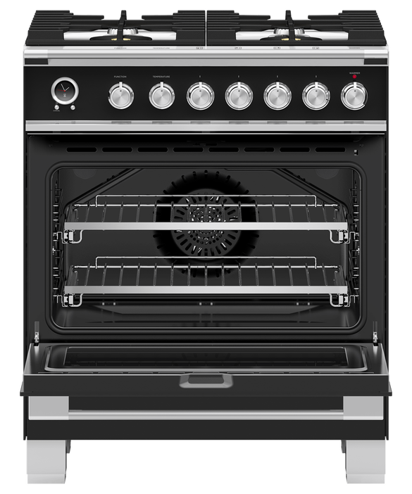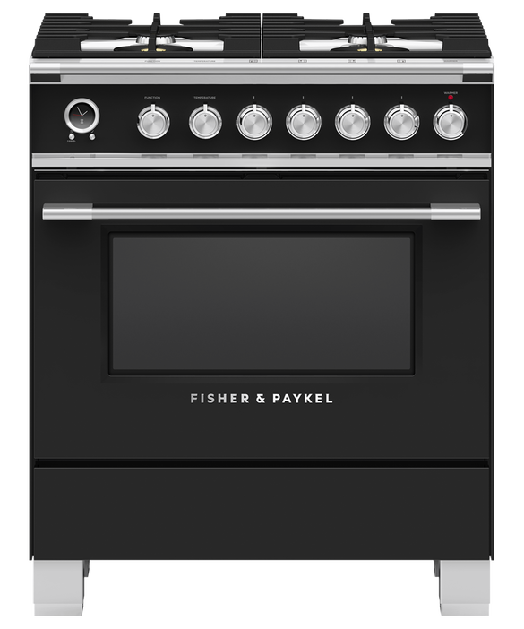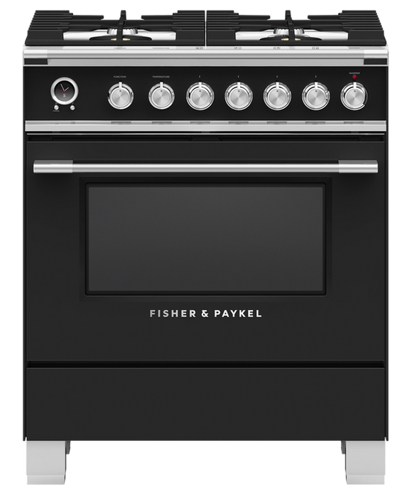 Fisher & Paykel 30" 4 Burner Classic Dual Fuel Range - Black - OR30SCG6B1