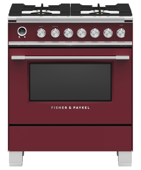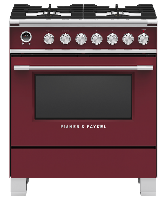 Fisher & Paykel 30" 4 Burner Classic Dual Fuel Range - Red - OR30SCG6R1
