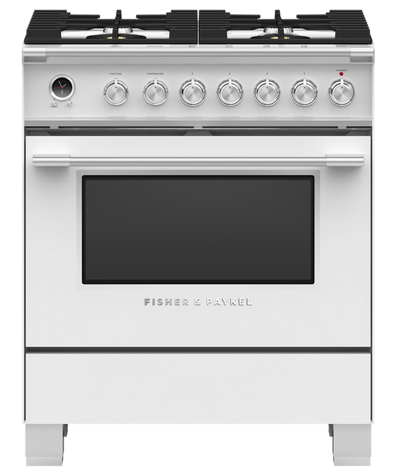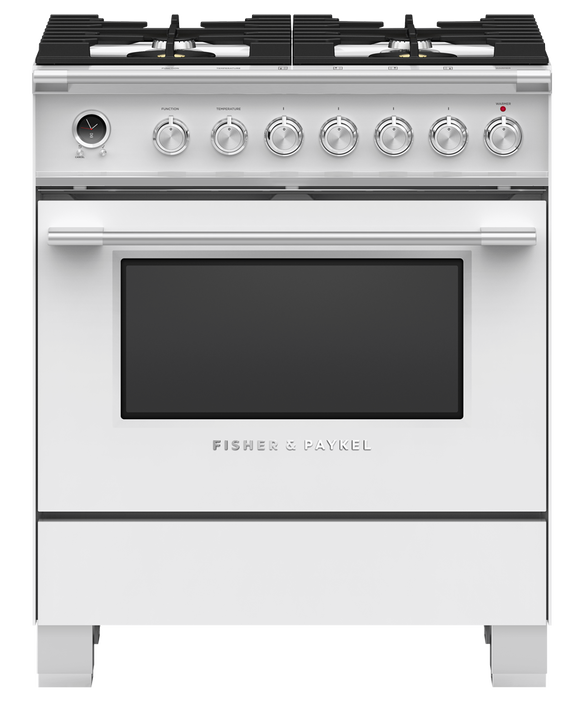 Fisher & Paykel 30" 4 Burner Classic Dual Fuel Range - White - OR30SCG6W1