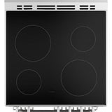 24” Free Standing Electric Range, 2.9 cu. ft., 6800W Cooktop Power, 4 Radiant Elements, Steam Clean, Storage Drawer, Removable Backsplash, Convection Bake, Hidden Bake Element, Stainless Steel.